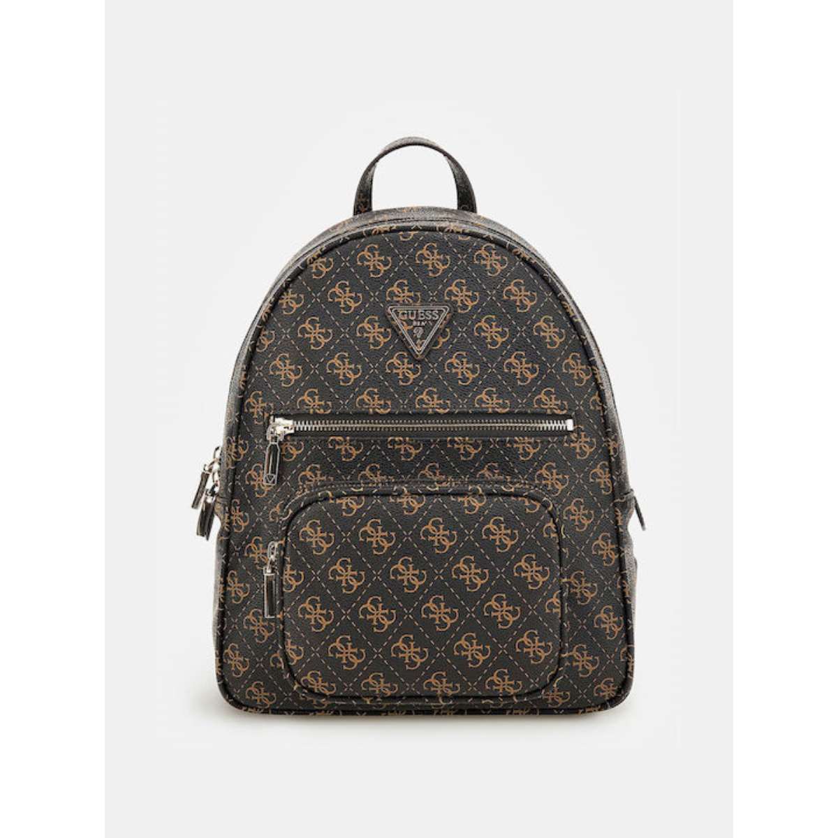 Guess ESG876733 Brown Τσάντα Πλάτης. Γυναικεία τσάντα πλάτης της εταιρείας Guess κατασκευασμένη από τεχνόδερμα. Ιδανική επιλογή για όλες τις ώρες της ημέρας προσφέρει άνεση και ταιριάζει με κάθε στυλ. Το κύριο μέρος της τσάντας κλείνει με φερμουάρ παρέχοντας ασφάλεια κατά τη μεταφορά των προσωπικών αντικειμένων. Υπάρχουν εσωτερικές θήκες για την καλύτερη οργάνωση των αντικειμένων.