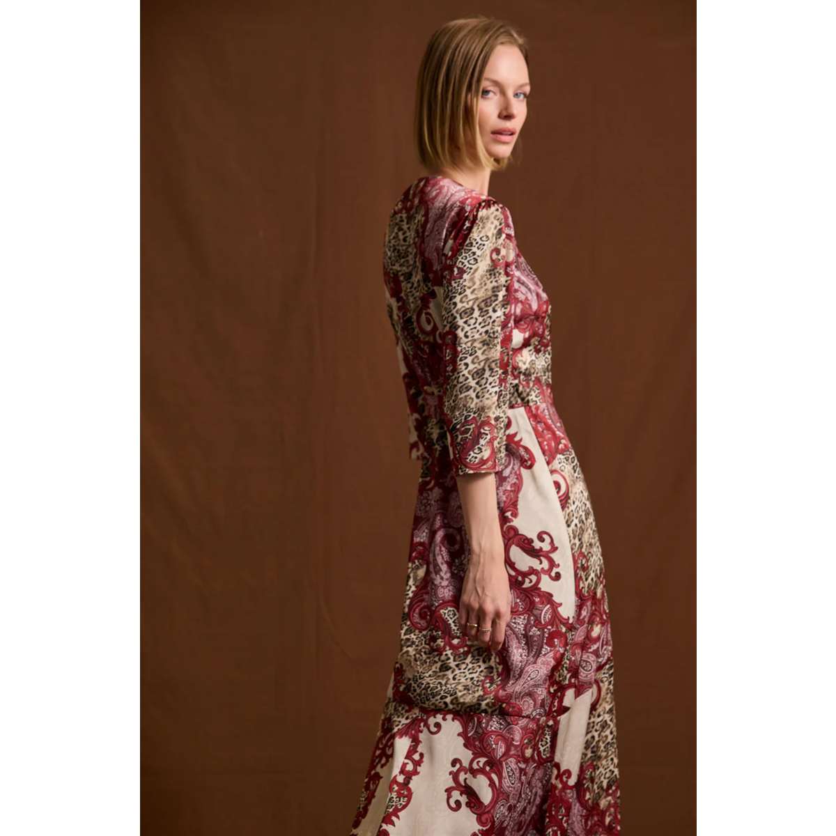 Enzzo 252161 Φόρεμα Jenna Μπορντό. Γυναικείο φόρεμα μάξι εμπριμέ απο την εταιρεία Enzzo με σταθερό ύφασμα, σατινέ σε άνετη γραμμή και κίνηση.