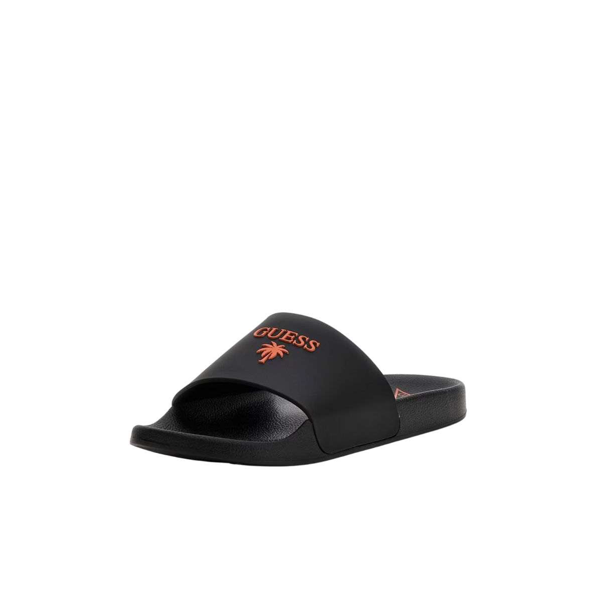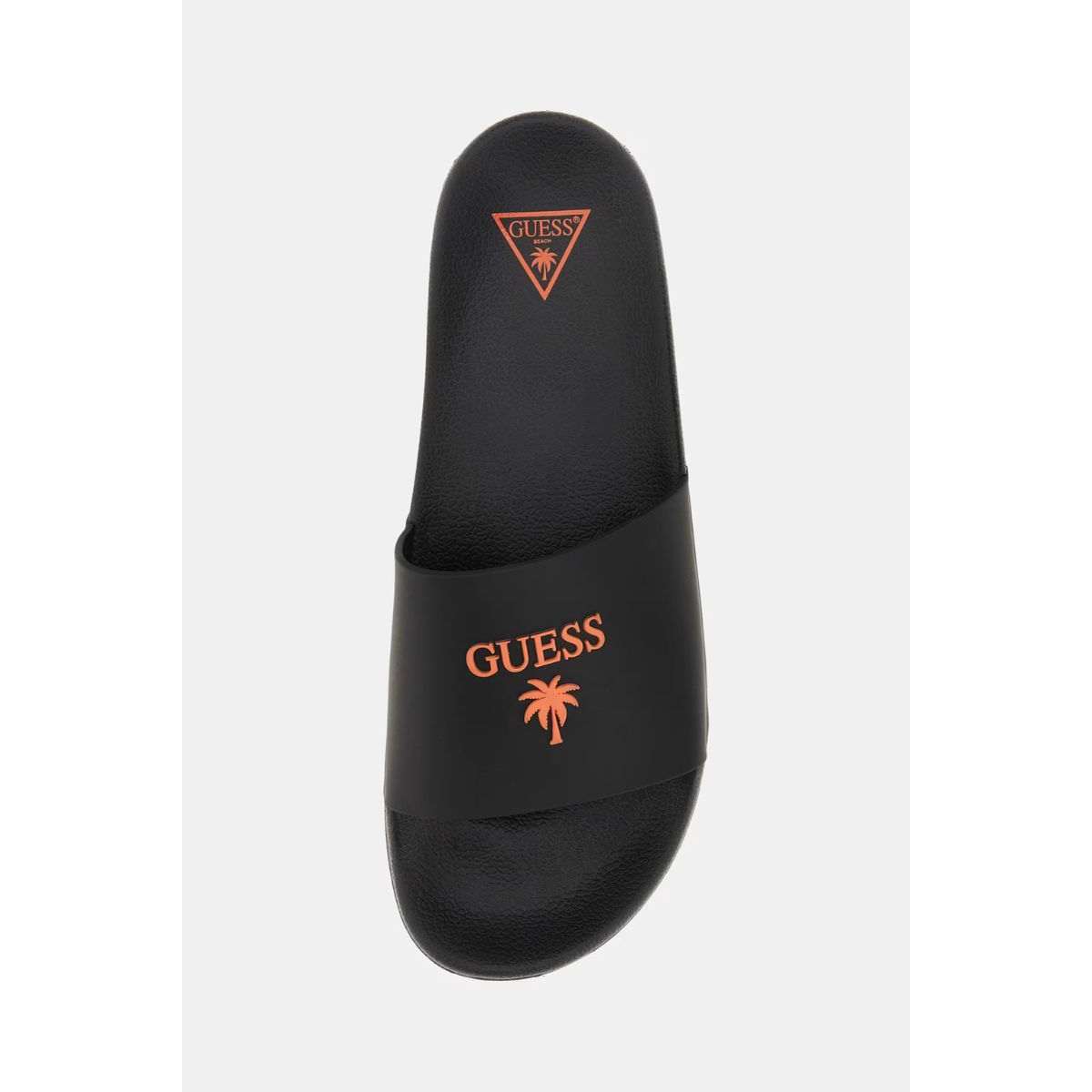 Guess F5GZ05BB00F-JBLK Παντόφλες Μαύρες. Ανδρική καλοκαιρινή παντόφλα παραλίας ανθεκτική στο νερό Slide Palm Logo απο την εταιρεία Guess.