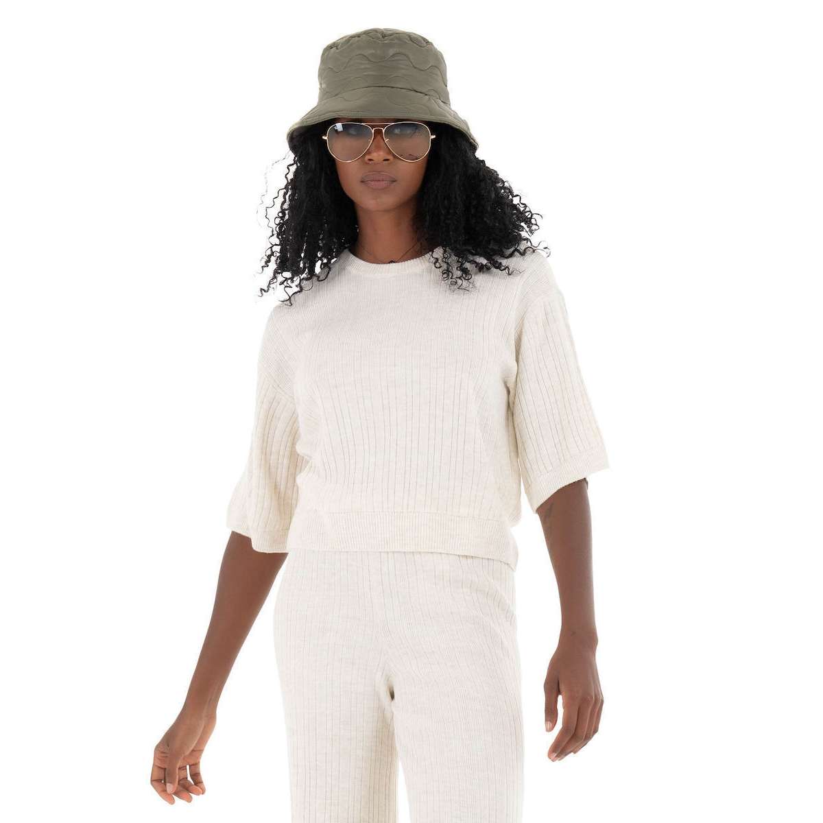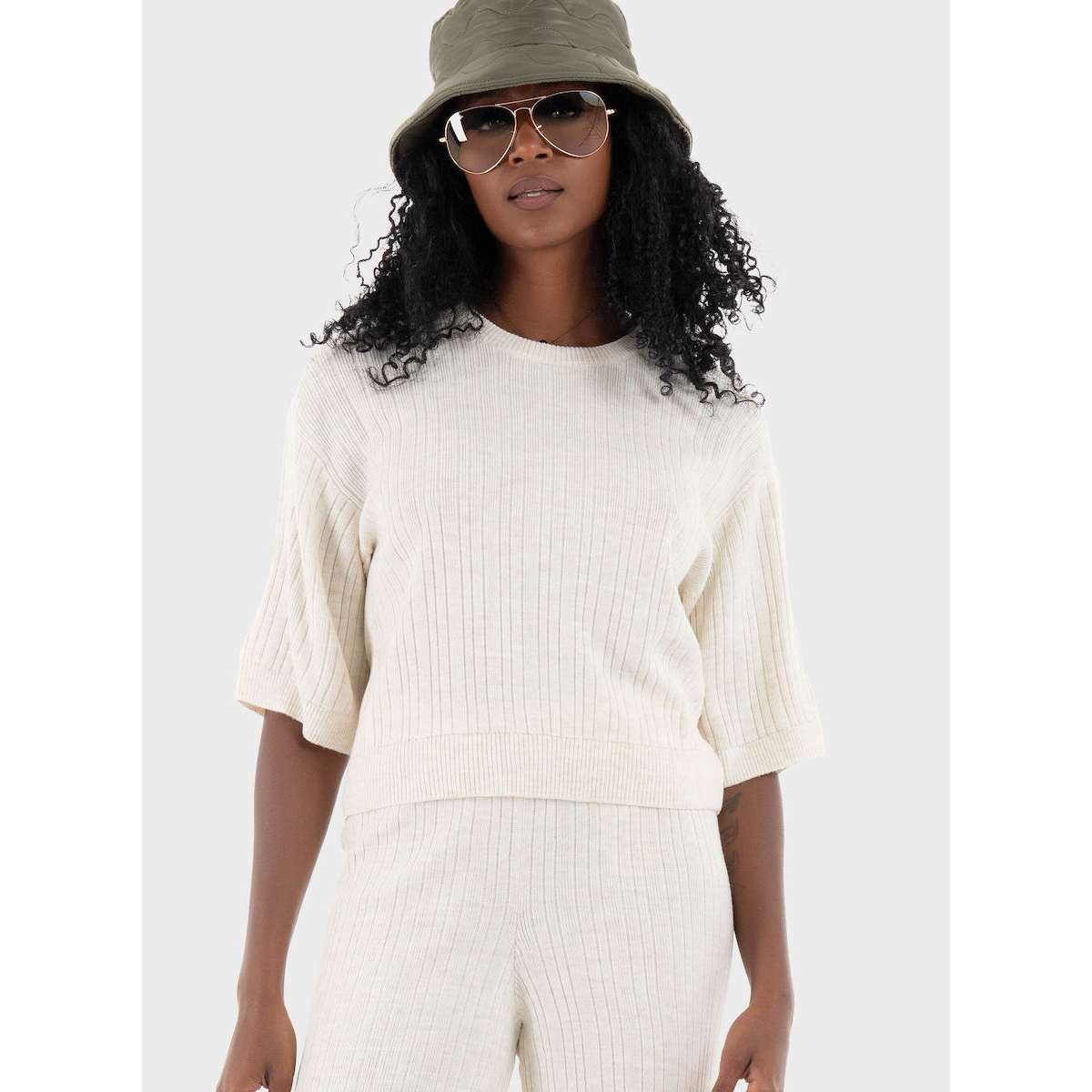 Only 15353023 Γυναικείο Crop Πουλόβερ Μπεζ. Γυναικεία πλεκτή μπλούζα με μανίκια 3/4, από την Only σε κανονική γραμμή.