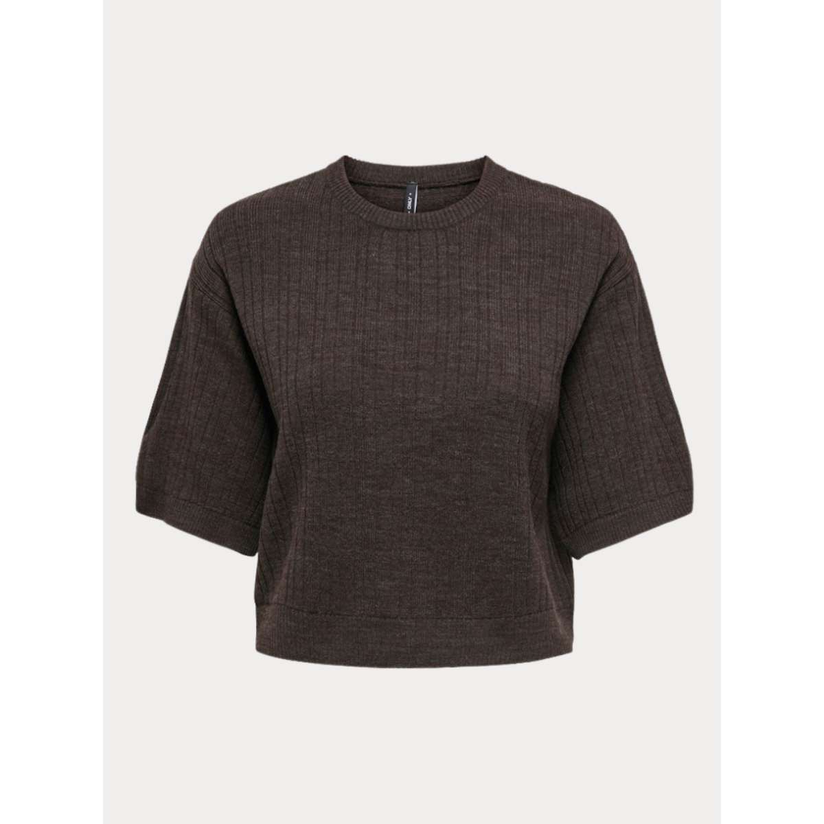Only 15353023 Γυναικείο Crop Πουλόβερ Καφέ. Γυναικεία πλεκτή μπλούζα με μανίκια 3/4, από την Only σε κανονική γραμμή.