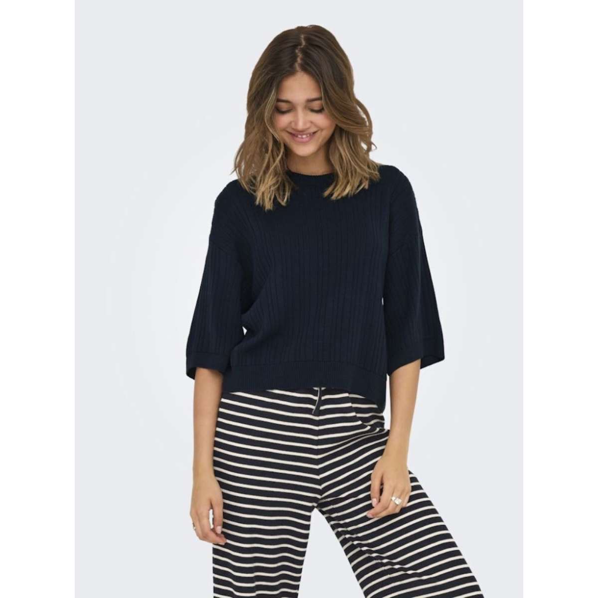 Only 15353023 Γυναικείο Crop Πουλόβερ Navy Γυναικεία πλεκτή μπλούζα με μανίκια 3/4, από την Only σε κανονική γραμμή.