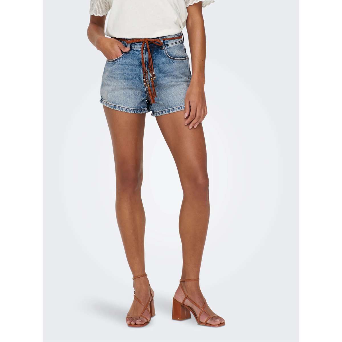 ONLY 15221469 KELLY Ψηλόμεσο Light Blue Denim Σορτς